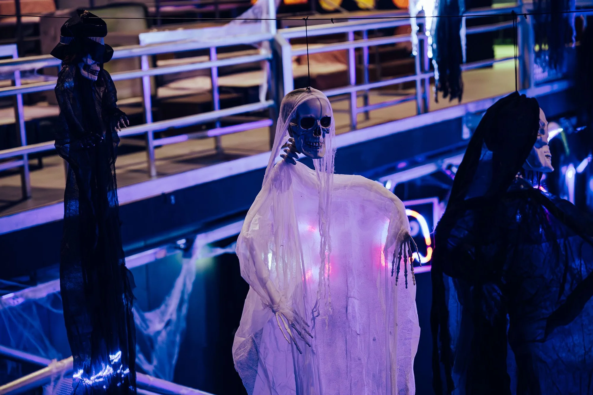 Il team di Open ha addobbato la discoteca Cdl Clubbing per Halloween con una serie di elementi spettrali e suggestivi. Hanno creato un’atmosfera inquietante con ragnatele finte, teschi e bare, facendo di questo evento un appuntamento imperdibile per tutti gli amanti di Halloween.